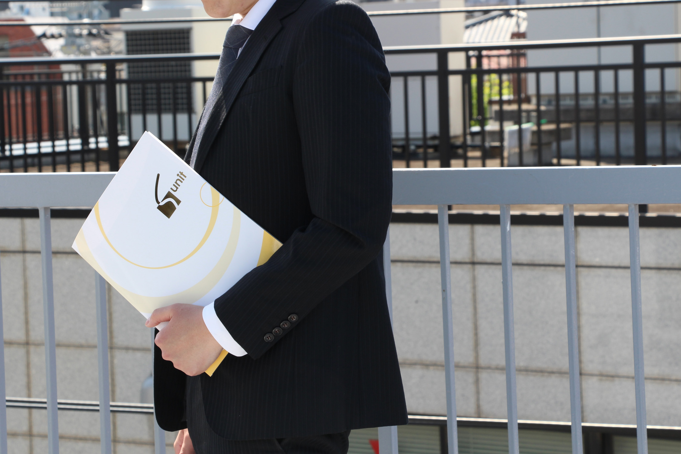 会社案内や、企画書、プレゼン資料などを中に入れる紙製のポケット付き二つ折りホルダーです。